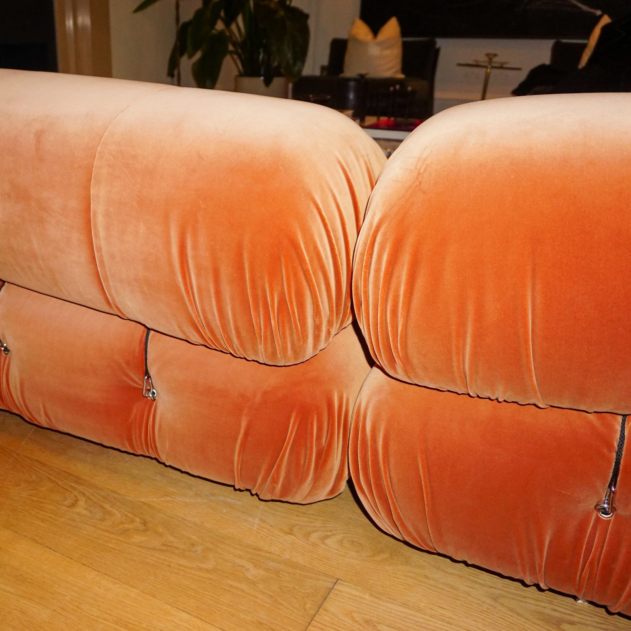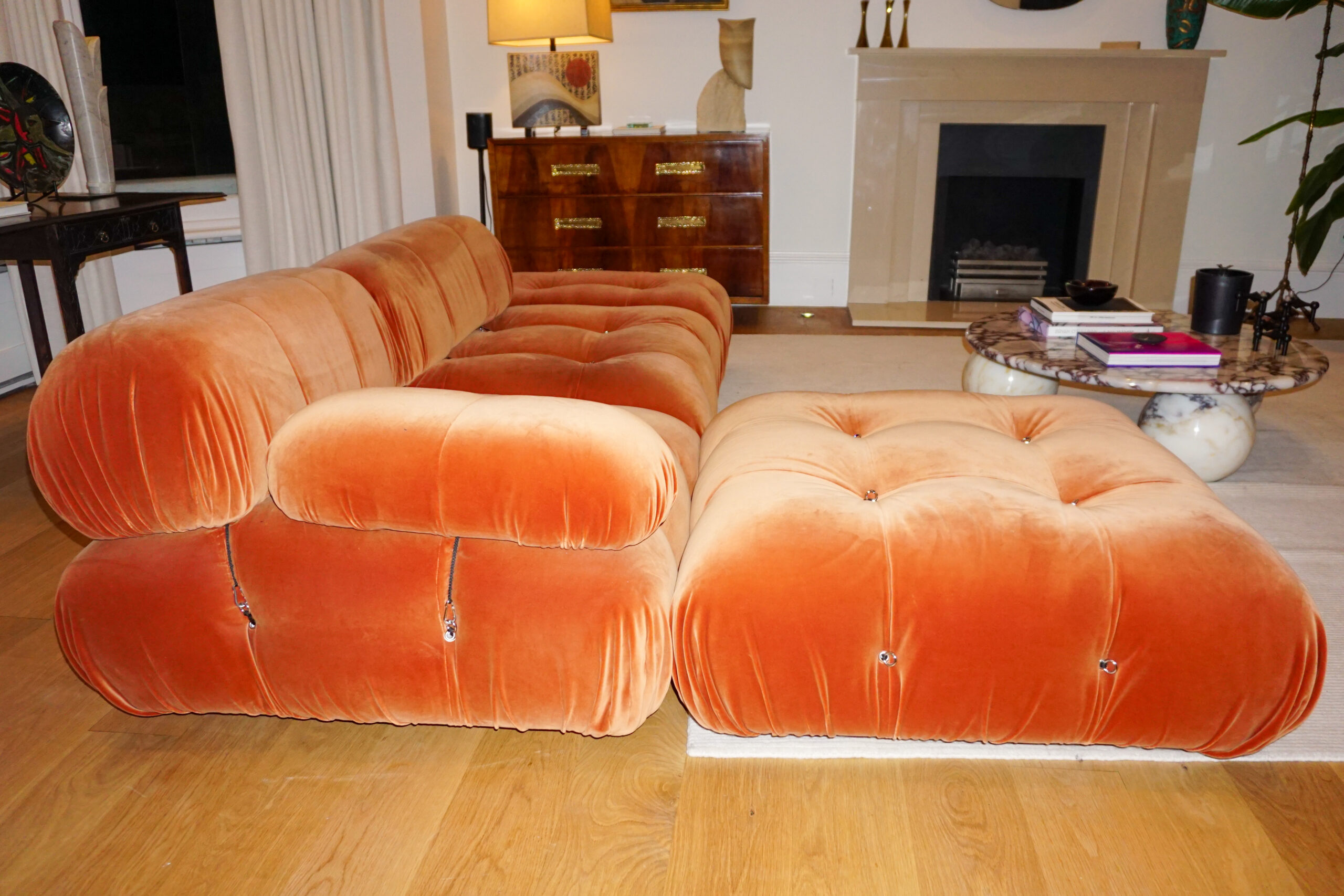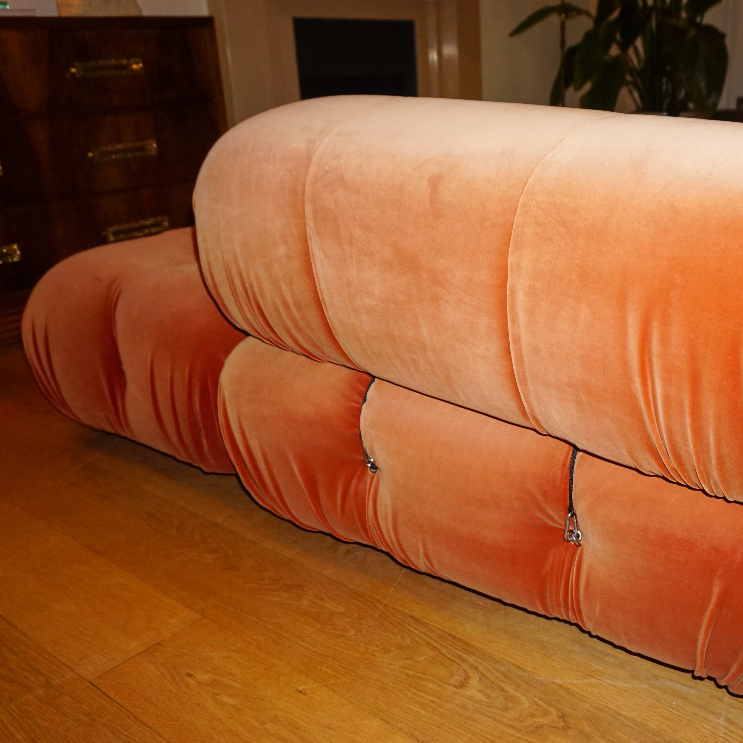Camaleonda Orange Velvet Sofa by Mario Bellini